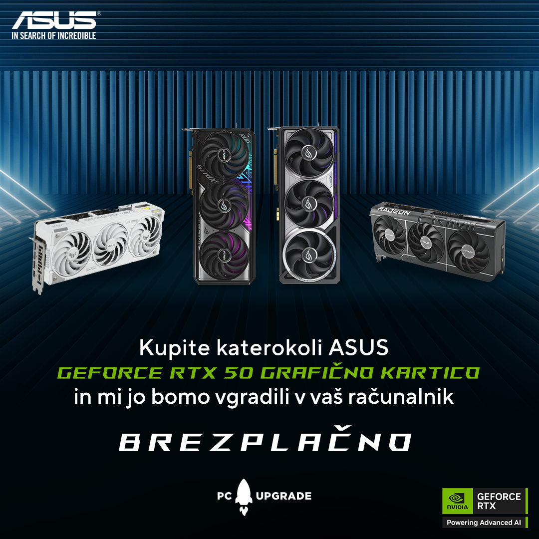 Prinesite svoj računalnik, izberite zmogljivo grafično kartico ASUS ali ROG iz naše ponudbe, mi pa jo bomo brezplačno vgradili! Čas je, da vaš PC zasije v polnem sijaju s preverjeno kakovostjo in zmogljivostjo!